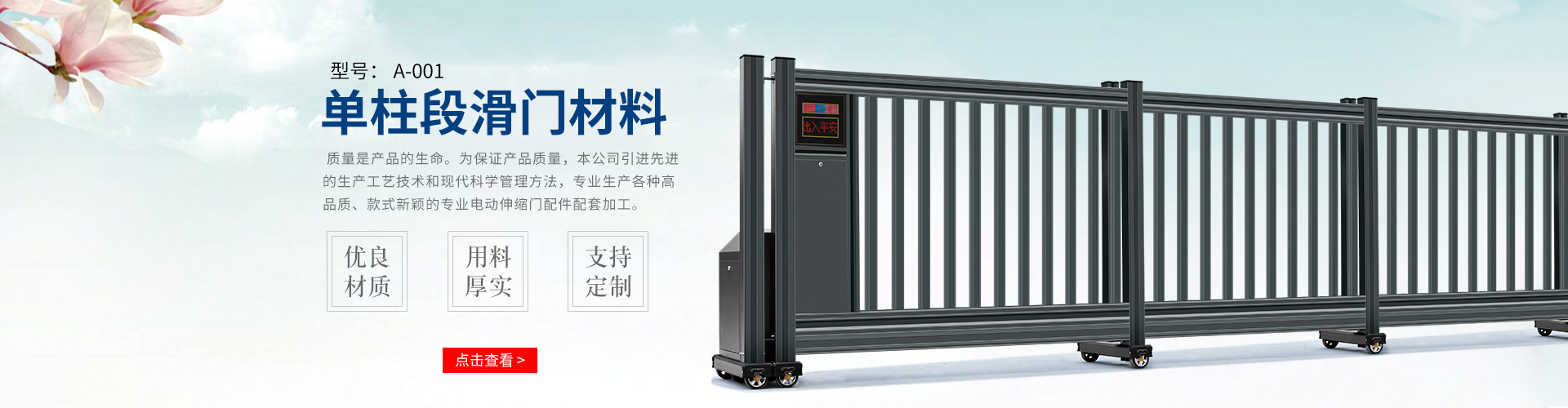 佛山市鴻湛源金屬制品有限公司,坐落于廣東省佛山市三水區(qū),占地面積 7000 平方米,是專(zhuān)業(yè)生產(chǎn)智能廣告小門(mén)、智能段滑門(mén),直線(xiàn)門(mén)配件、配套散件、鑄鋁件等產(chǎn)品為主的企業(yè)。本公司擁有多年的制造經(jīng)驗(yàn),引進(jìn)先進(jìn)的生產(chǎn)工藝技術(shù)和現(xiàn)代科學(xué)管理方法,專(zhuān)業(yè)生產(chǎn)各種高品質(zhì)、款式新穎的專(zhuān)業(yè)電動(dòng)段滑門(mén)配件配套加工企業(yè)。 佛山市鴻湛源金屬制品有限公司始建2006 年并于 2013 年注冊(cè)成立,在這 13 年間,始終堅(jiān)持以人為本,堅(jiān)持科技創(chuàng)新,并從細(xì)節(jié)入手、從點(diǎn)滴做起,把精工細(xì)作的精神滲透到每一個(gè)生產(chǎn)環(huán)節(jié),傾力打造好產(chǎn)品、創(chuàng)品牌。同時(shí)企業(yè)精心營(yíng)造濃郁的“忠誠(chéng)”文化,在企業(yè)、客戶(hù)和員工之間構(gòu)筑起誠(chéng)信、忠實(shí)、和諧的紐帶,攜手發(fā)展共創(chuàng)輝煌。 本企業(yè)承諾將一如既往,重守誠(chéng)信,精益求精。秉承團(tuán)結(jié)開(kāi)拓求實(shí)的敬業(yè)精神,與廣大新老客戶(hù)共創(chuàng)美好明天。